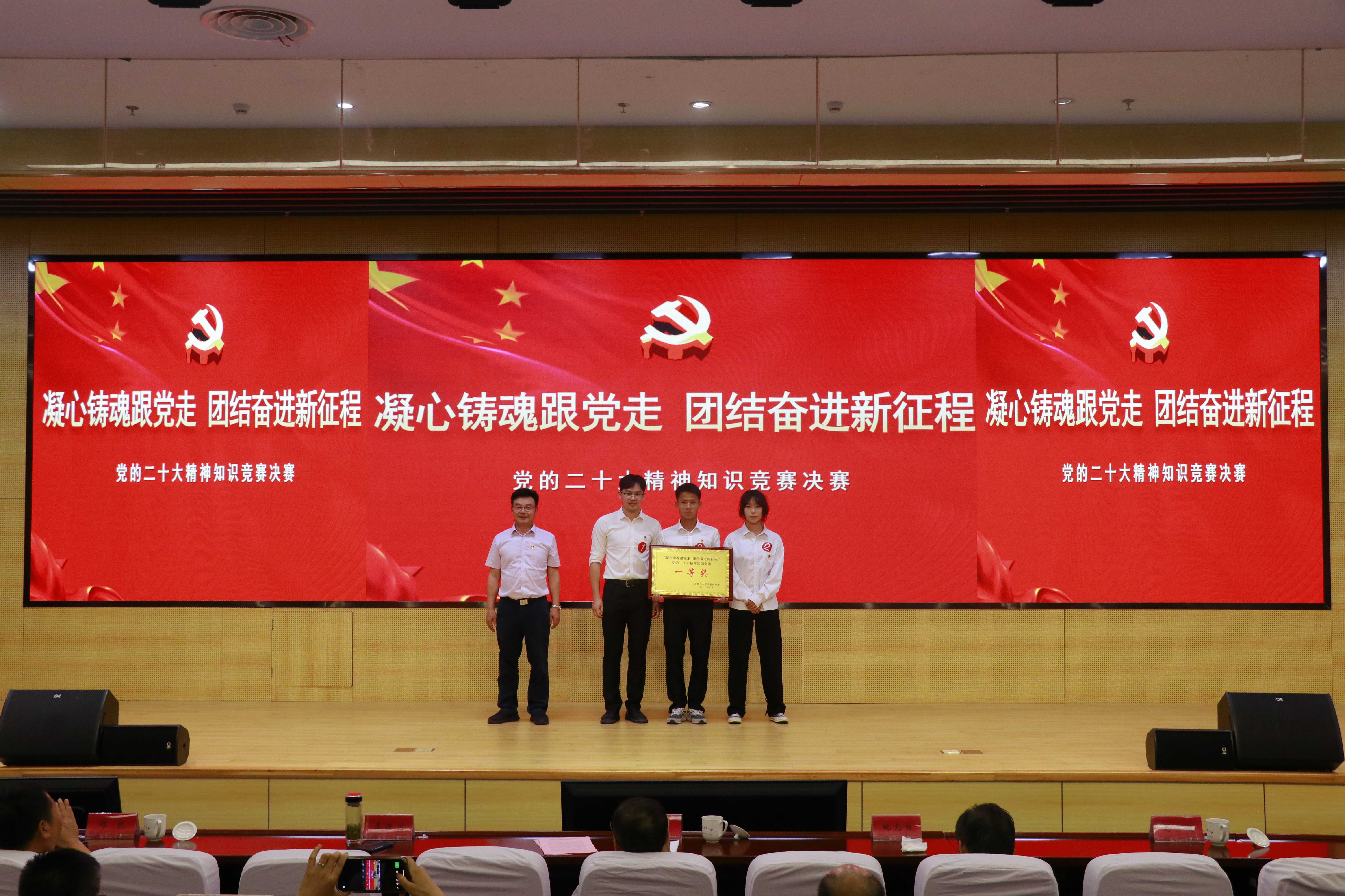 为深入开展学习贯彻习近平新时代中国特色社会主义思想主题教育,持续推动学习贯彻党的二十大精神走深走实,引导广大学生坚定不移听党话、跟党走,争做有理想、敢担当的、能吃苦、肯奋斗的新时代好青年,6月2日下午,“凝心铸魂跟党走,团结奋进新征程”党的二十大精神知识竞赛决赛在长山校区图书馆B105报告厅举行。校党委副书记汤建,党委常委、组织部部长李恒川出席本次大赛。党务工作专员姚允柱担任大赛指导专家,部分机关部门负责人、各学院书记、副书记、组织员、学生党支部书记、学生代表现场观摩比赛。