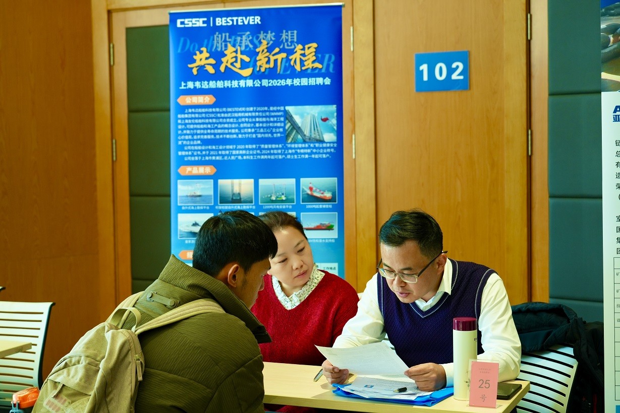 如何让企业用人与高校育人精准匹配?怎样更好破解船舶海工行业引才育才痛点,强化产业高质量发展人才储备?11月18日下午,国产自拍在线观看船协联合国产自拍在线观看举办“会员单位进高校”专场招聘会,以“精准引才、校企协同、赋能产业”为目标,高效链接供需两端,为船舶海工行业企事业单位与高校学子搭建起双向奔赴的就业交流平台。